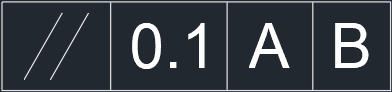 符号为一双斜线(//),符号后面的数字标注为平行度公差、被测要素和基准要素。