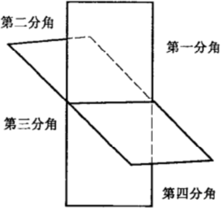 将物体置于第一分角内,并使其处于观察者与投影面之间而得到正投影的方法。