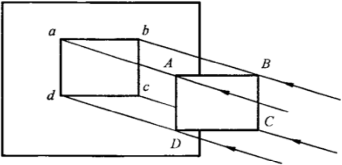 投射线通过物体,向选定的面投射,并在该面上得到图形的方法。