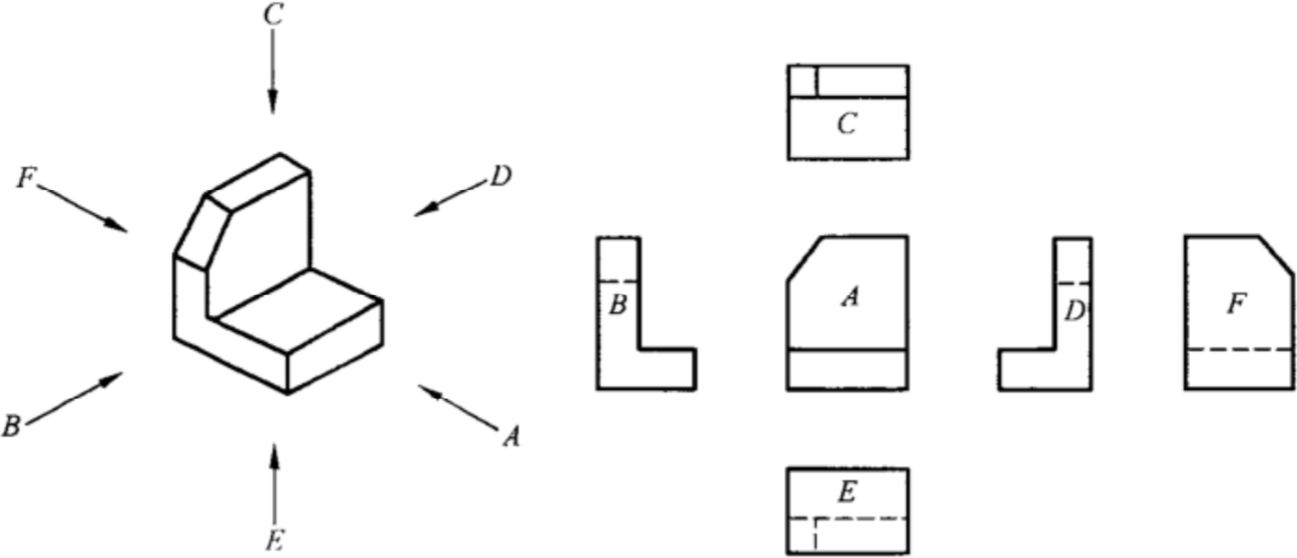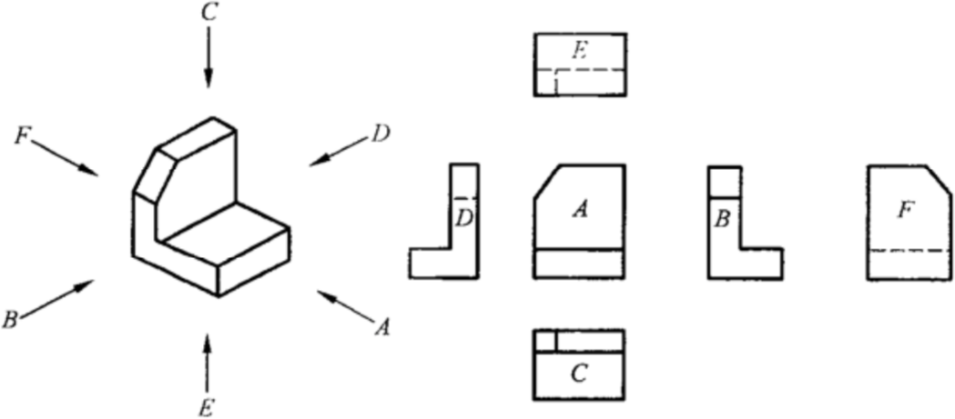 中国采用第I分角,称为E(Europe)法,投影顺序是:观察者-物体-投影面。
