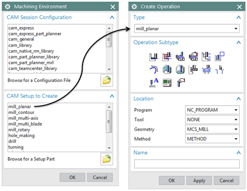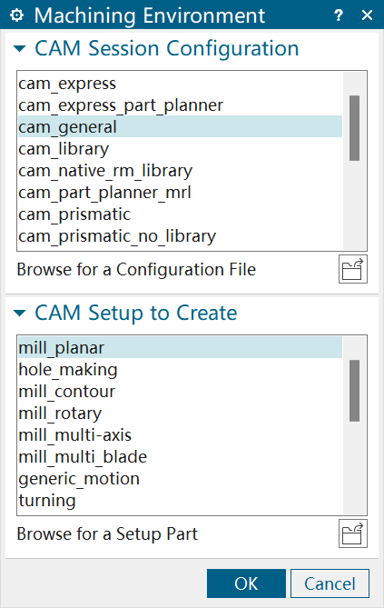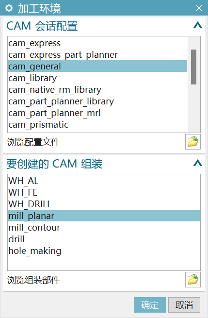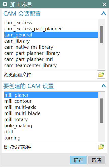 首次进入加工应用模块,系统会要求设置加工环境(Machining Environment),弹出创建加工环境对话框。