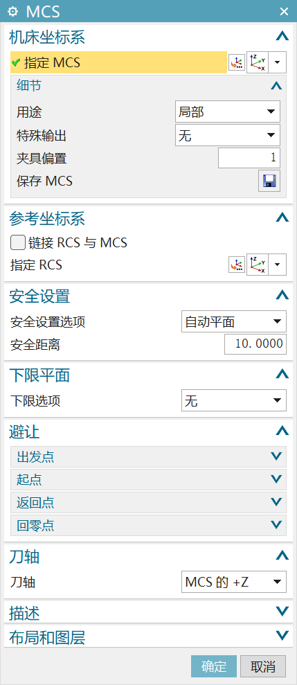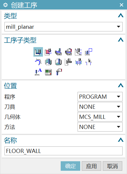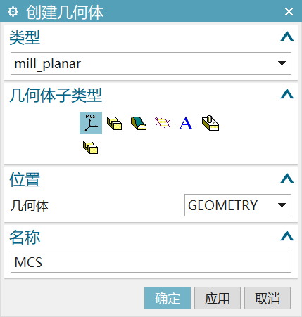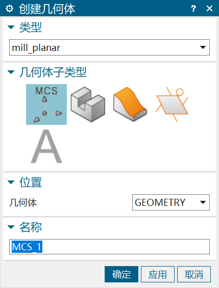 选定合适的几何体,工序将对该几何体进行加工。默认几何体为MCS_MILL。