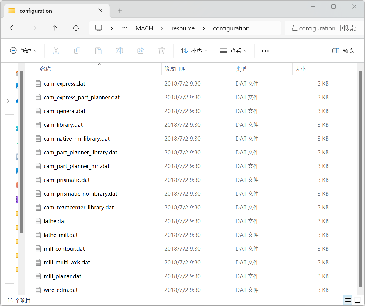 ../Siemens/NX2007/MACH/resource/configuration 文件夹中的 .dat 数据文件名会枚举到CAM Session Configuration(会话配置) 配置文件列表中。