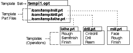 配置文件(.dat)中指定了要在加工计划(组装/Setup)中使用的模板集(.opt),模板集文件(.opt)是模板部件文件(.prt)的集合。