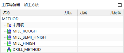 工序导航器是用来管理当前加工模型的操作及刀具路径的一个图形用户界面。