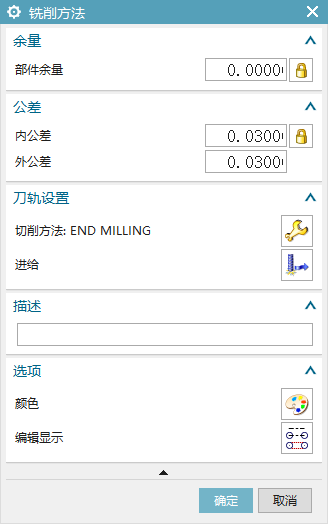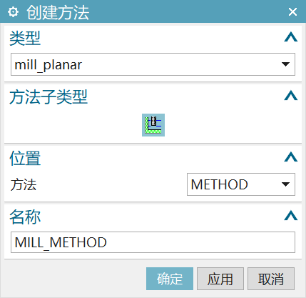 选定合适的加工方法,系统将根据该方法中设置的切削速度、内外公差和部件余量对几何体进行切削加工。默认的加工方法为METHOD。