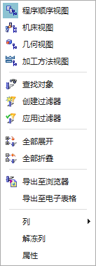程序顺序视图、机床视图、几何视图或加工方法视图: