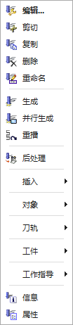 在 工序导航器 选择一个 操作(工序),右键单击将弹出如图所示的 对象操作快捷菜单。
