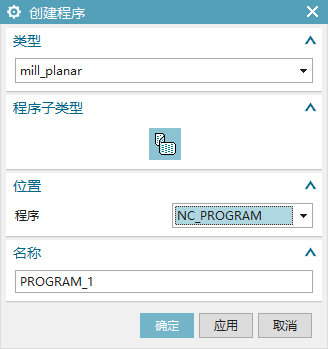 选定合适的程序父组,工序将继承该程序父组的参数。默认程序父组为NC_PROGRAM。