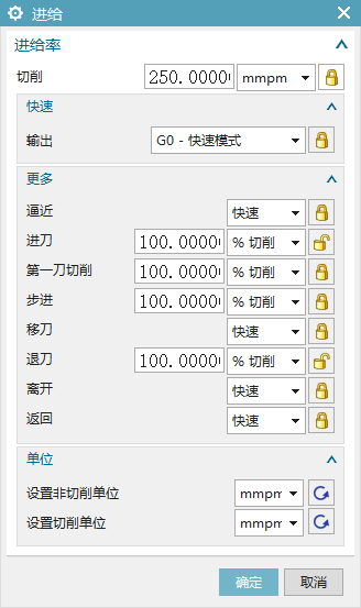 设置加工计划中常用的选项,这些选项可以是余量、公差、进给率和显示参数,其优点是只需指定一次值,就可在整个加工计划中保持加工一致。