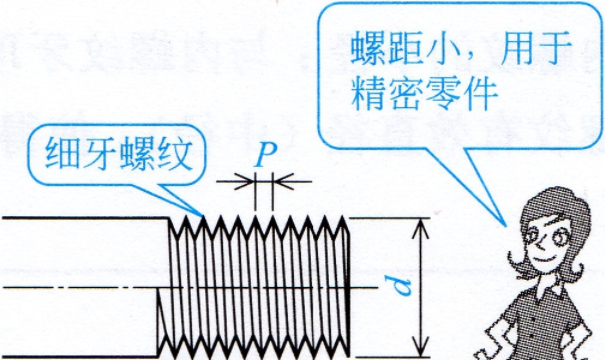 相同直径的螺纹,可按照螺距的差异分为粗牙螺纹和细牙螺纹。