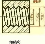 内径(小径):与外螺纹牙底或内螺纹牙顶相重合的假想圆柱体直径。