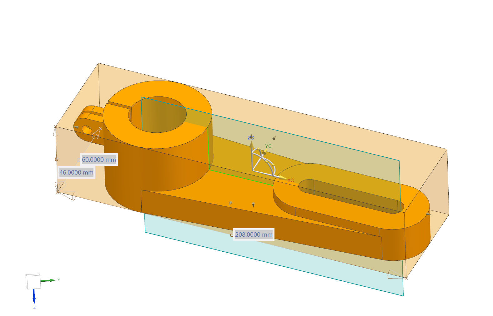 找到中心对称面与部件的相交曲线。水平为 X 轴方向,竖直为 Z 轴方向。